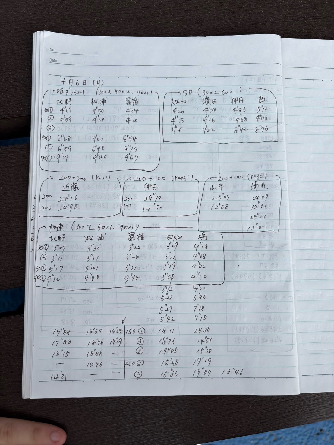 • 坂ダッシュ 30×3.50×3.70×1 •加速走30×2.50×1.90×1流し150×3.120×1