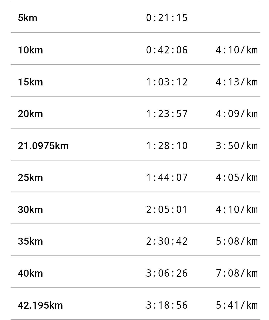 ぐんまマラソン3:18:56 セカンドベストぐんまマラソン。自己ベストに10秒届かず。まさかの7時から8時まで雨。スタート前は晴れて良かった。15kmまではジョグ感覚でいけて、15kmからはリズムの良い人がいたので後ろについて楽させてもらった。33km手前までは良かった。そこからまた雨が降り出し、さらには冷たい赤城おろしの強風。寒い。もうここで心が折れた。後半は5mの風が進まない身体をさらに押し返してくる。38km半ばでハムスト攣りそうで完全にストップ。走っては止まって伸ばすの繰り返し。諦めて1回攣らせて無理矢理走ったら痛くても意外と走れたので、もう潔く攣った方がいいのかも。でもあの痛みを味わうのは…自己ベスト狙ってたから残念な結果だけど、意外と悔しくない。収穫の方が多い。
