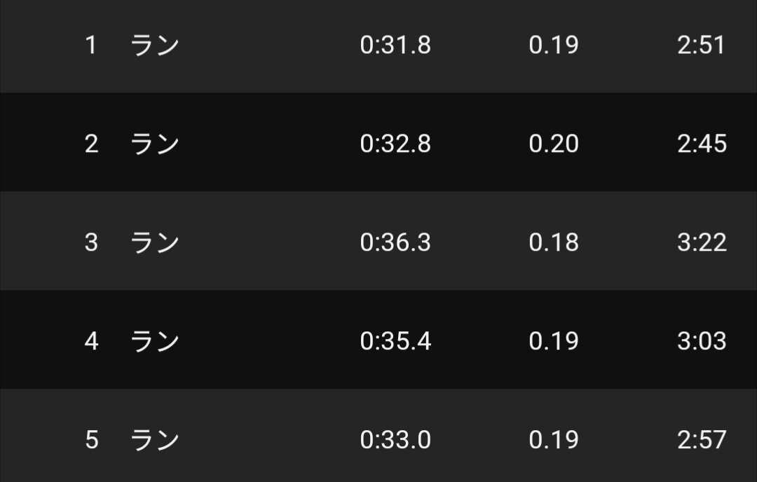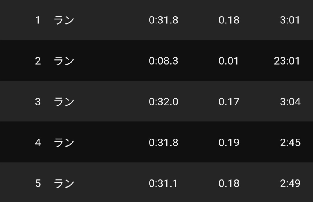 1週間ぶりだったからか、31秒台とかなり速いペースで5本まとめられた。筋トレとかの効果出てるかも。少しふくらはぎが疲れる感じはまだあるが、先週と比べてシューズで400mトラックなのでまだマシなのかも。