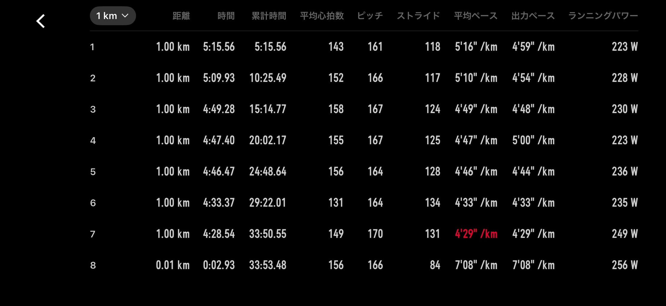 12kmレース ヴェイパー246’59/12.1km3’36 3’47 3’50 4’50 3’39 3’534’09 4’54 3’14 3’36 3’35 3’32最初と最後の3キロが軽い起伏がある平地4分台のところは大体1キロで100mくらい登ったとこ最初ゆっくり入りすぎたのはミス最後垂れるよりは良かったかもしれない捻挫テーピングして強行したから庇っていたのか左だけシンスプみたいになって痛い