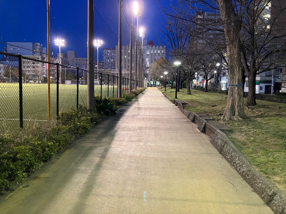 体育館からでてすぐ横の公園で走れます。野球場の通りにちょうどよい直線コースがあります。