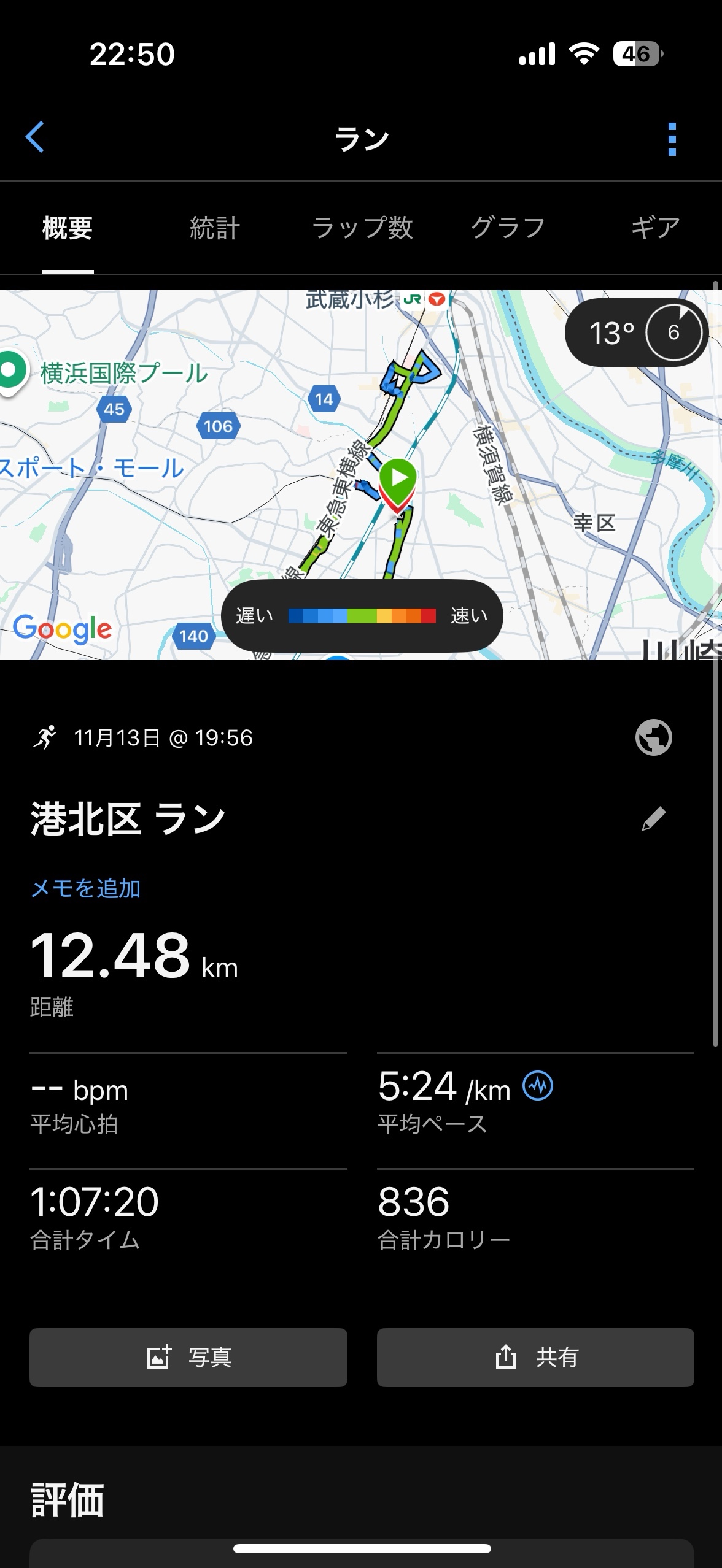 12.48kジョグ終始シンスプ痛い遅いジョグすると痛いはやくなおんねーかなー
